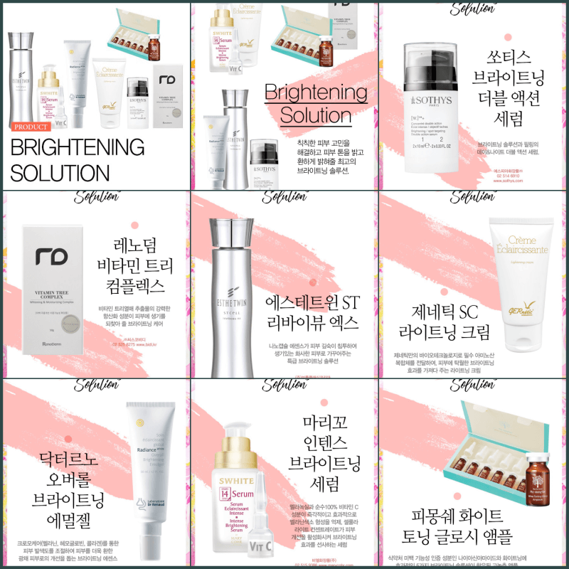 또한 아래 표는 입술 색소 침착을 위해서 사용할만한 다양한 화이트닝 화장품 종류 링크바로가기입니다.