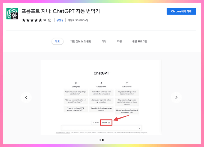 chatgpt에 또 한 가지 단점이 있죠 바로 한국어로 질문하면 답이 엄청 느리고 답변도 짧고 오류도 자주 나는 경우 불편함이 많은데요 이를 해결을 해 줄수 있는 확장 프로그램입니다.
