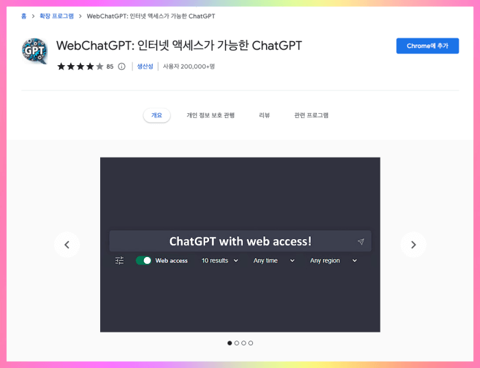 1. WebChatGPT: 최신 인터넷 정보 액세스가 가능한 ChatGPT 확장프로그램